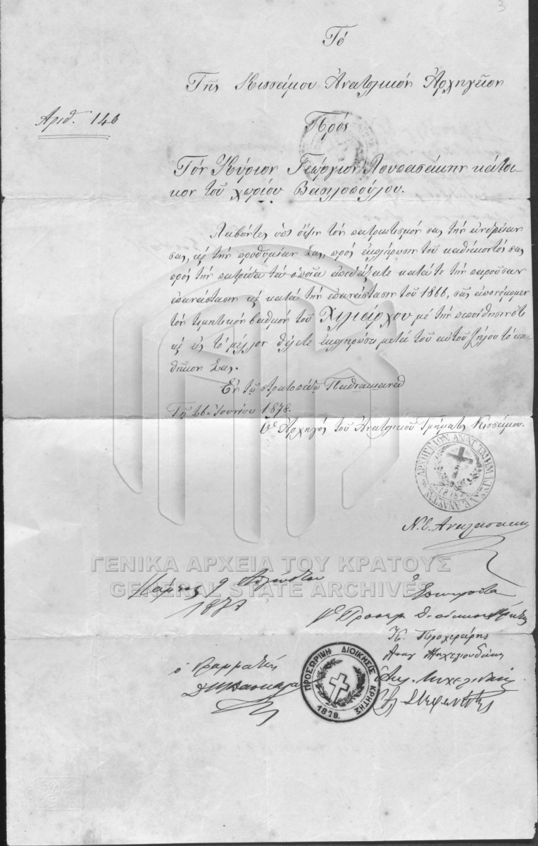 [File] GRGSA-IAK_AGO012.01.F000007 File #007 [1878 - 1908] Contents: Αιτήσεις - πιστοποιητικά αγωνιστών, χηρών - ορφανών του Νομού Χανίων προς την Επιτροπή αγωνιστών. |