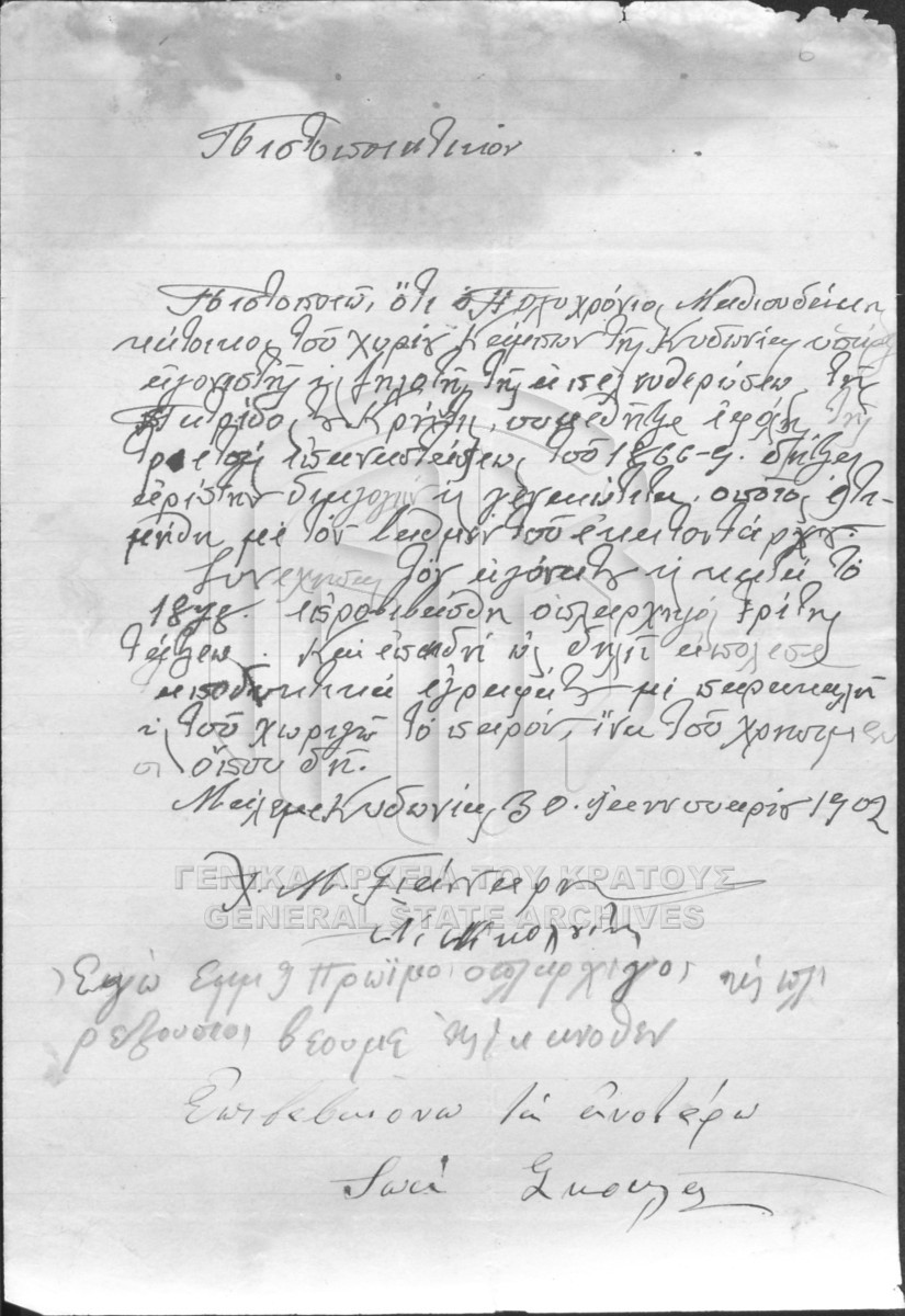 [File] GRGSA-IAK_AGO012.01.F000007 File #007 [1878 - 1908] Contents: Αιτήσεις - πιστοποιητικά αγωνιστών, χηρών - ορφανών του Νομού Χανίων προς την Επιτροπή αγωνιστών. |