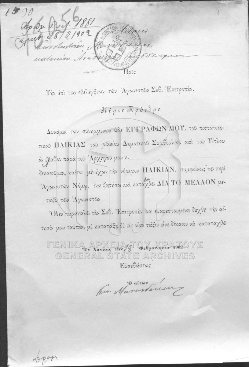 Αιτήσεις - πιστοποιητικά αγωνιστών, χηρών - ορφανών του Νομού Χανίων προς την Επιτροπή αγωνιστών.