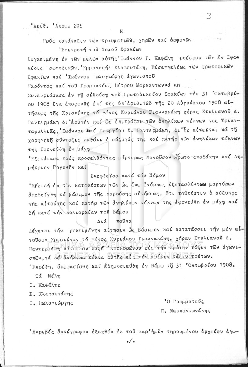 [Subfile] GRGSA-IAK_AGO012.01.F000026.SF0145 Subfile #145 [1908] Αιτήσεις - πιστοποιητικά αγωνιστών, χηρών - ορφανών της Επαρχίας Σφακίων προς την Επιτροπή Αγωνιστών. |