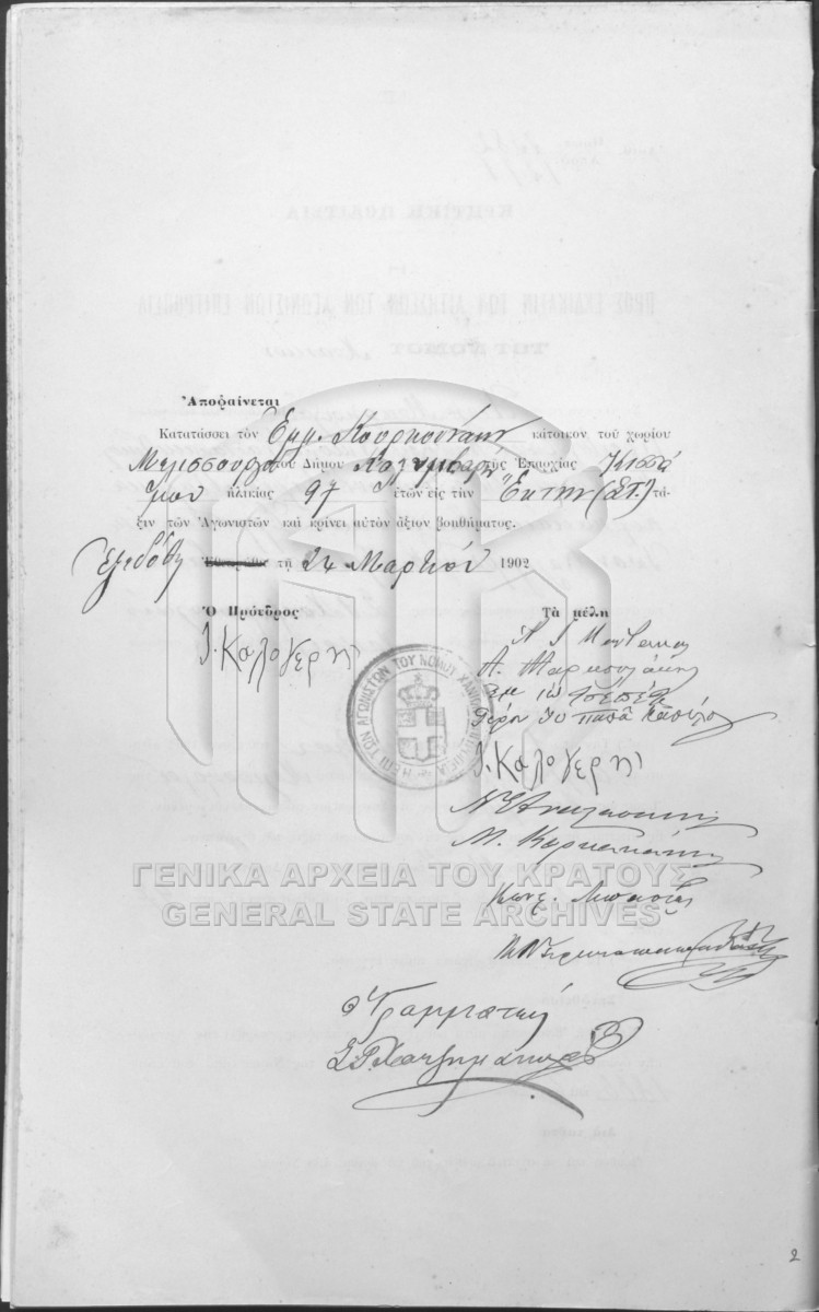 [File] GRGSA-IAK_AGO012.01.F000040 File #040 [1902] Contents: Αποφάσεις Επιτροπής αγωνιστών για αγωνιστές, χήρες - ορφανά του Νομού Χανίων. Αποφάσεις Επιτροπής αγωνιστών για αγωνιστέ... |