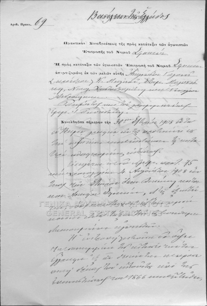 [Subfile] GRGSA-IAK_AGO012.01.F00PR45.SF0069 Subfile #069 [1908] Αποφάσεις Επιτροπής αγωνιστών για αγωνιστές, χήρες - ορφανά της Επαρχίας Σφακίων. |