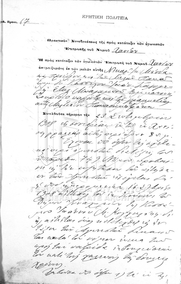 Πρακτικά αποφάσεων αγωνιστών Νομού Χανίων.