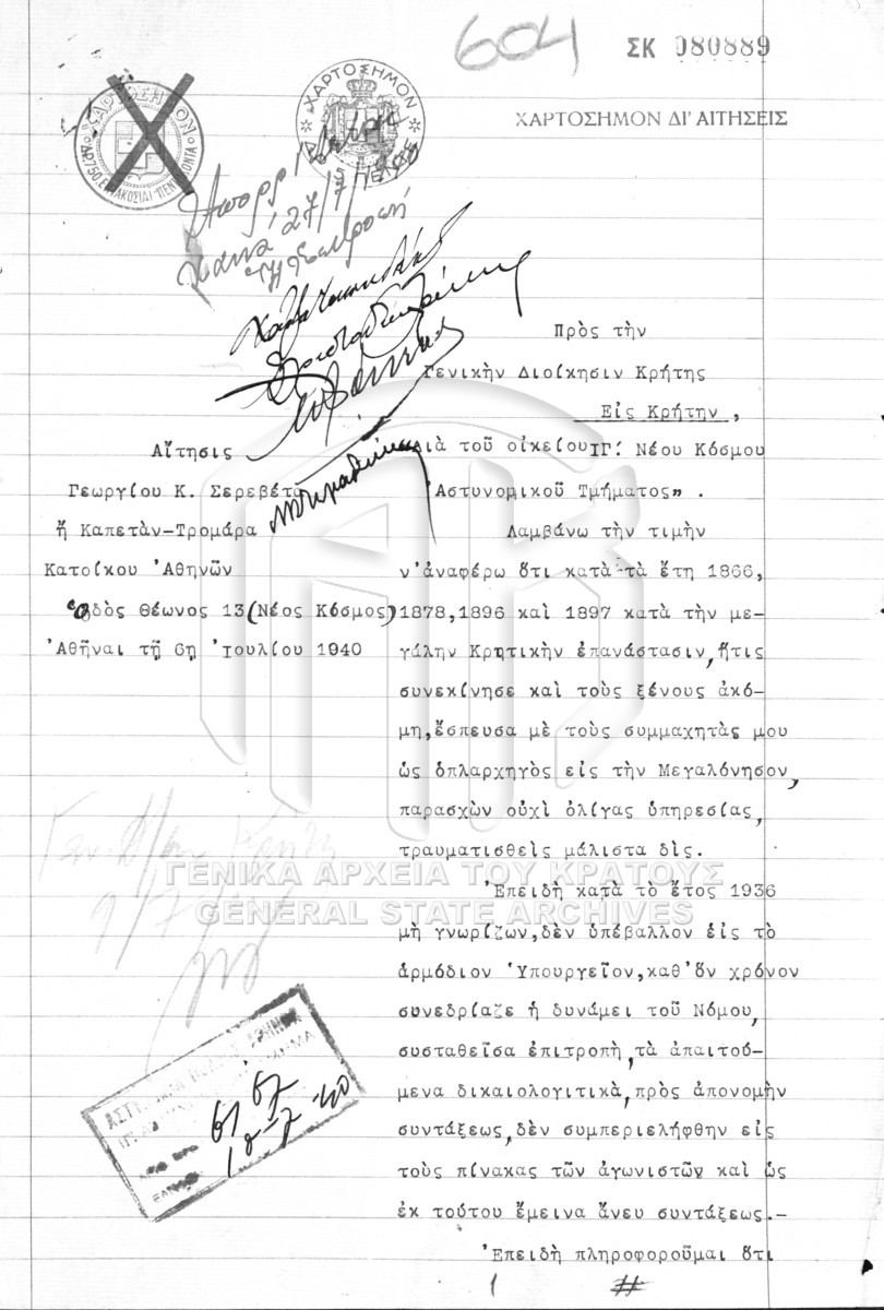 [Item] GRGSA-IAK_AGO012.01.F000076.SF0003.IT00604 Item #604 [1940] Αιτήσεις - πιστοποιητικά αγωνιστών, χηρών - ορφανών προς την Επιτροπή αγωνιστών. |