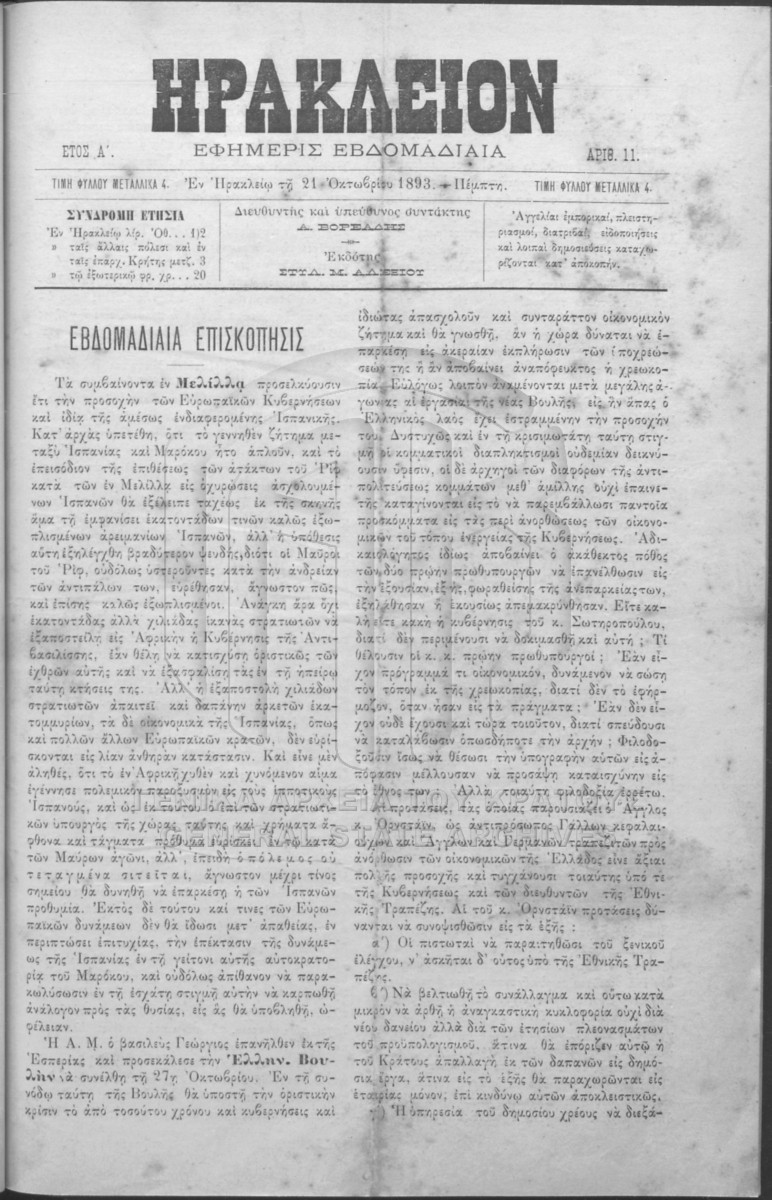 ΑΡΧΕΙΟ ΕΦΗΜΕΡΙΔΩΝ ΧΑΝΙΩΝ  [1893 - 1896]