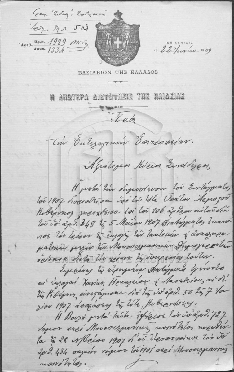 [Τεκμήριο] GRGSA-IAK_KPE000.17.F000020.SF0001.IT00503 Τεκμήριο #503 [1909] Αλληλογραφία της Εκτελεστικής Επιτροπής. |