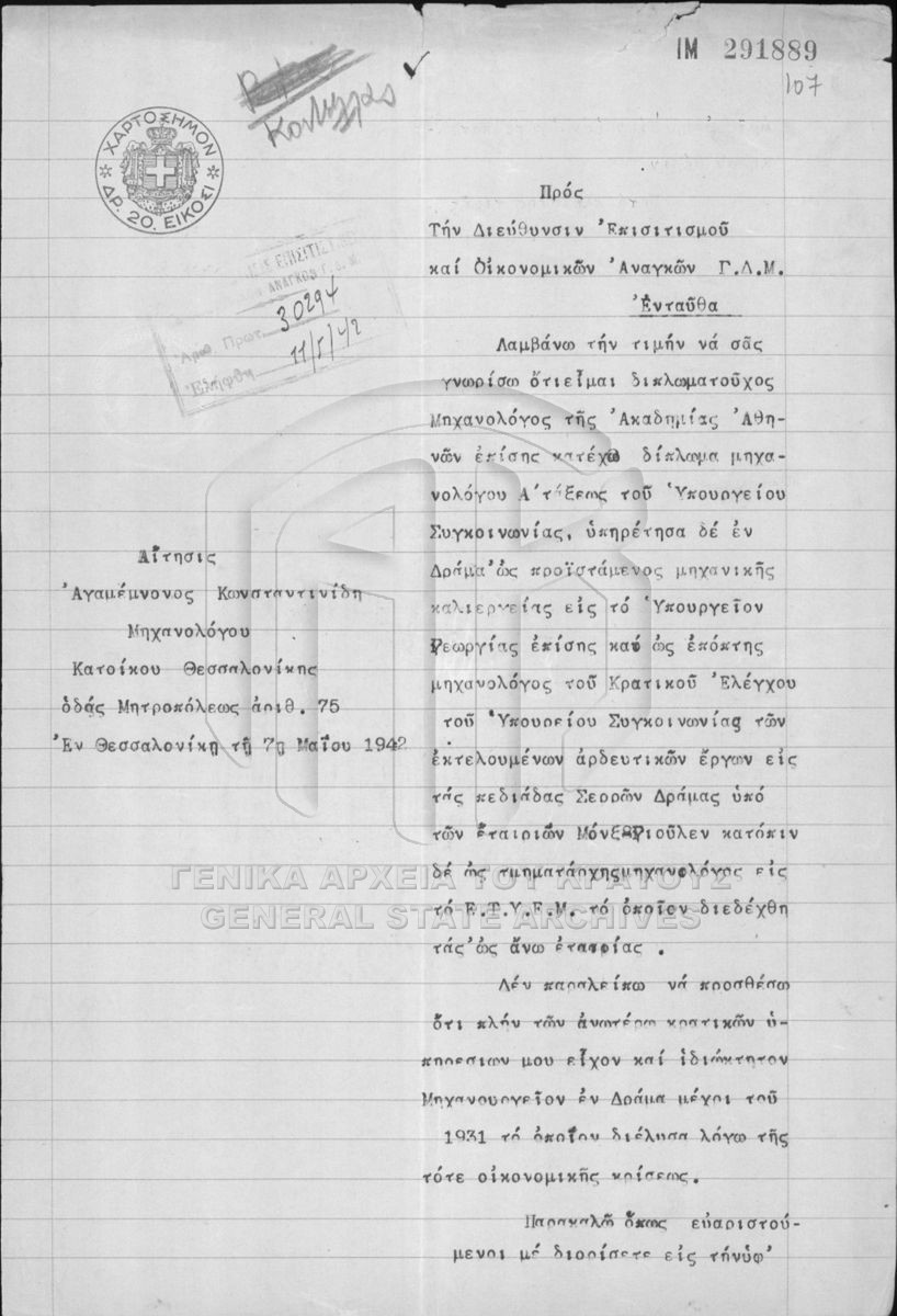 [Υποφάκελος] GRGSA-IAM_ADM003.01.F000008.SF0001 Υποφάκελος #001 [1941] Αιτήσεις για διορισμό στην Διεύθυνση Επισιτισμού Θεσ/νίκης. |