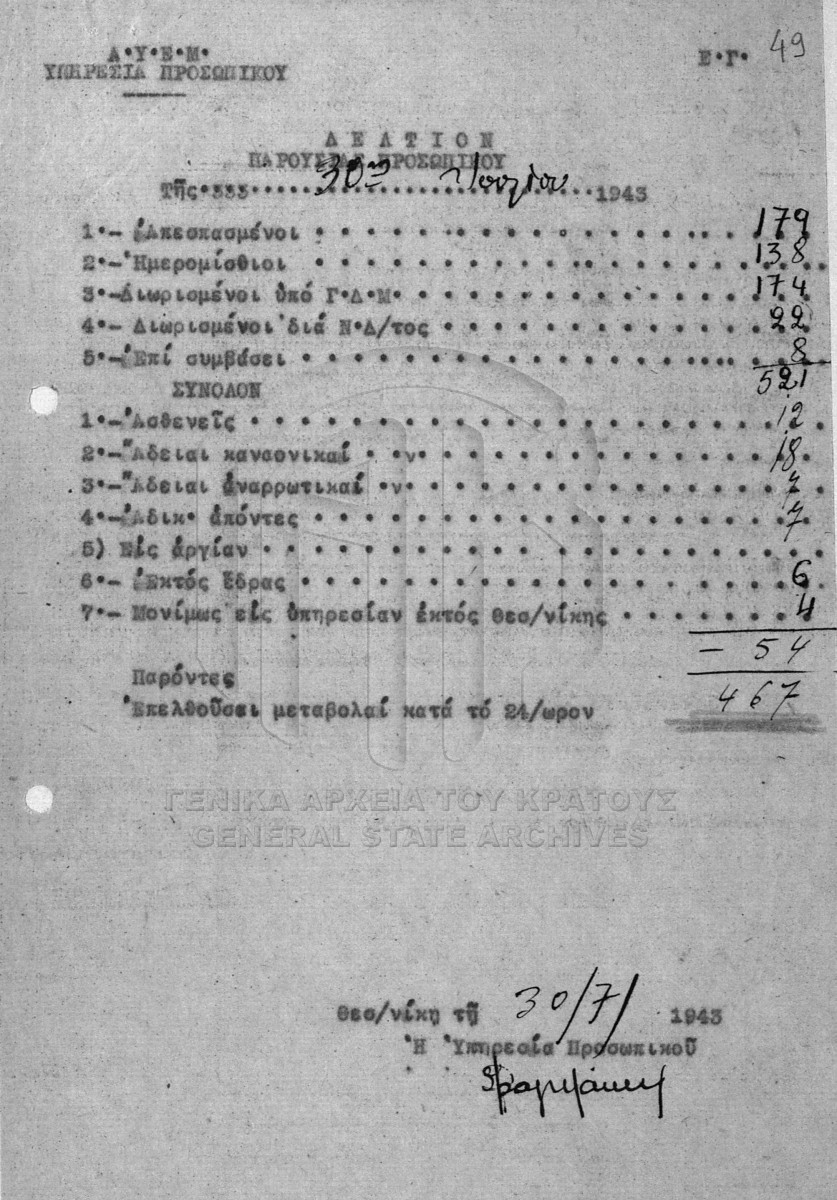 Καταστάσεις και δελτία παρουσίας του προσωπικού της ΑΥΕΜ.