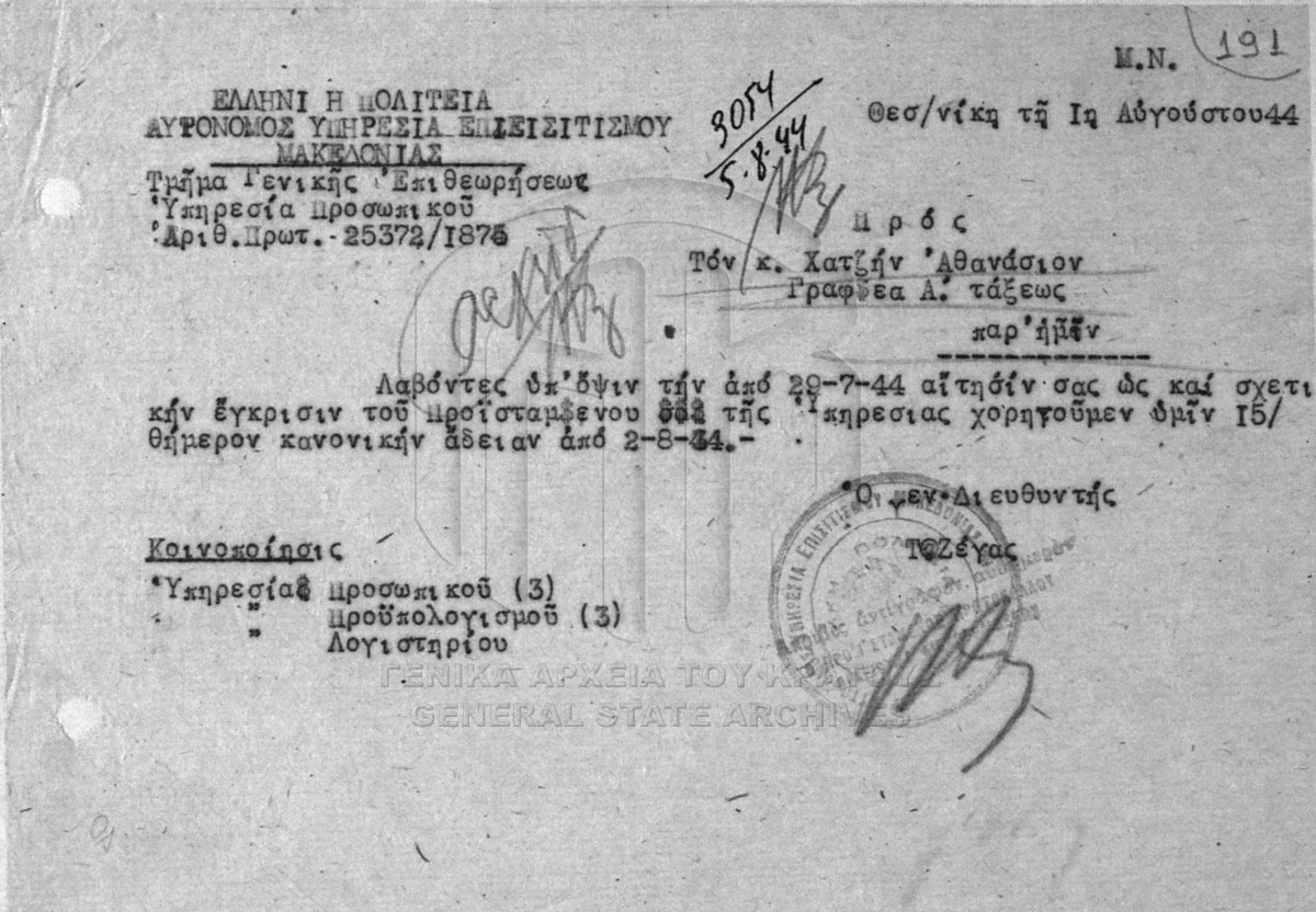 ΑΥΤΟΝΟΜΗ ΥΠΗΡΕΣΙΑ ΕΠΙΣΙΤΙΣΜΟΥ ΜΑΚΕΔΟΝΙΑΣ  [1941 - 1945]