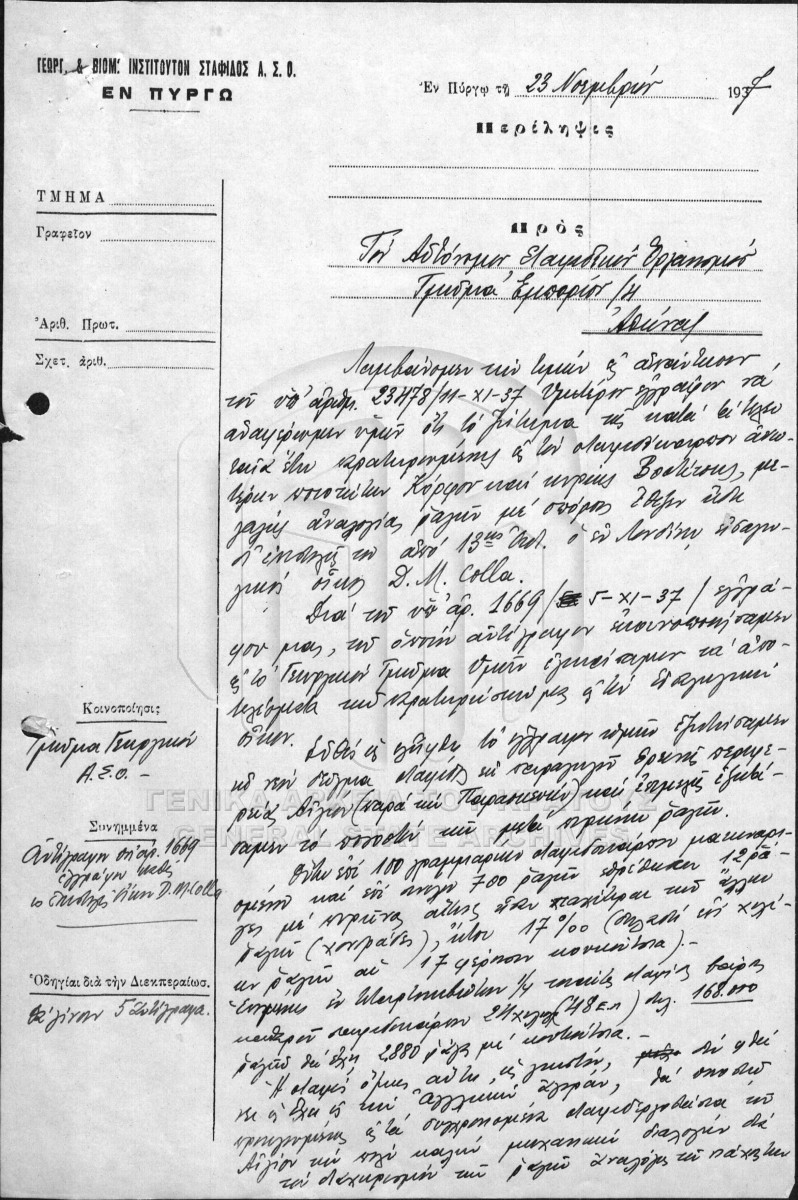 File #010 - ΙΝΣΤΙΤΟΥΤΟ ΣΤΑΦΙΔΑΣ / ΕΚΘΕΣΕΙΣ ΠΕΙΡΑΜΑΤΑ  [1937 - 1969]