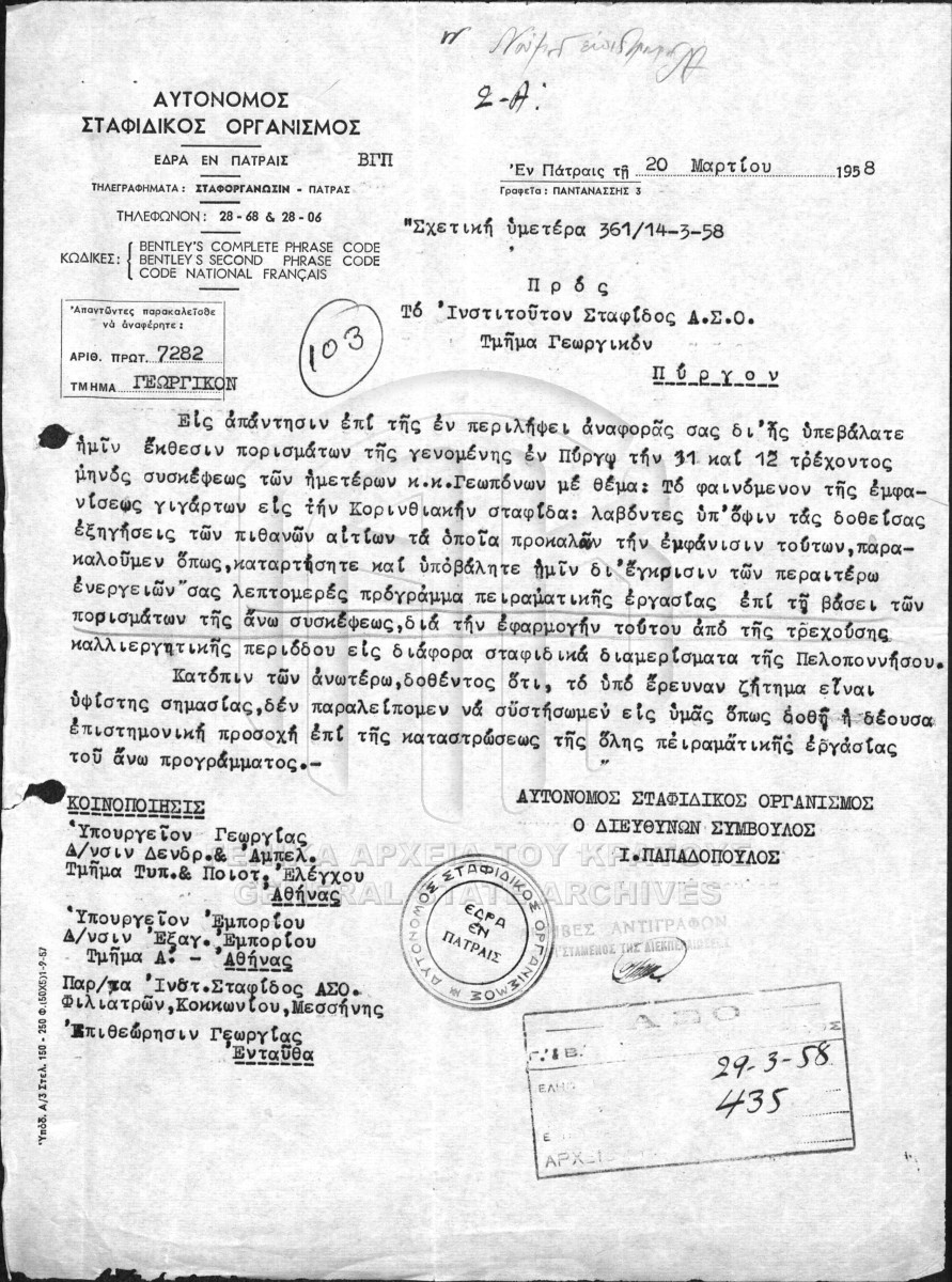 [Fonds] GRGSA-ILE_ADM007 ΙΝΣΤΙΤΟΥΤΟ ΣΤΑΦΙΔΑΣ / ΠΕΡΙΟΔΙΚΟ ΕΡΓΑ [1908 - 1992] Contents: |