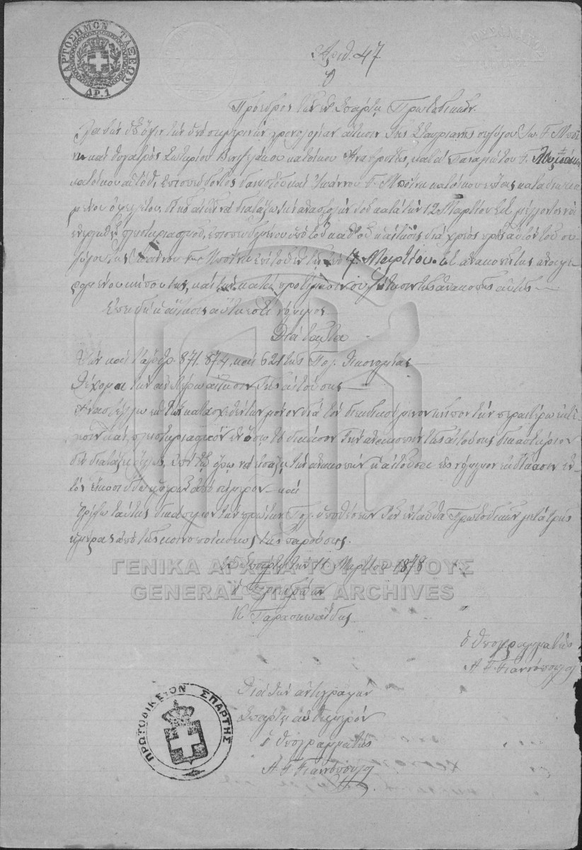 [Item] GRGSA-LAK_NOT009.01.F000011.IT002594 Item #2594 [12 Μαρτίου 1878] Notarial deed. |