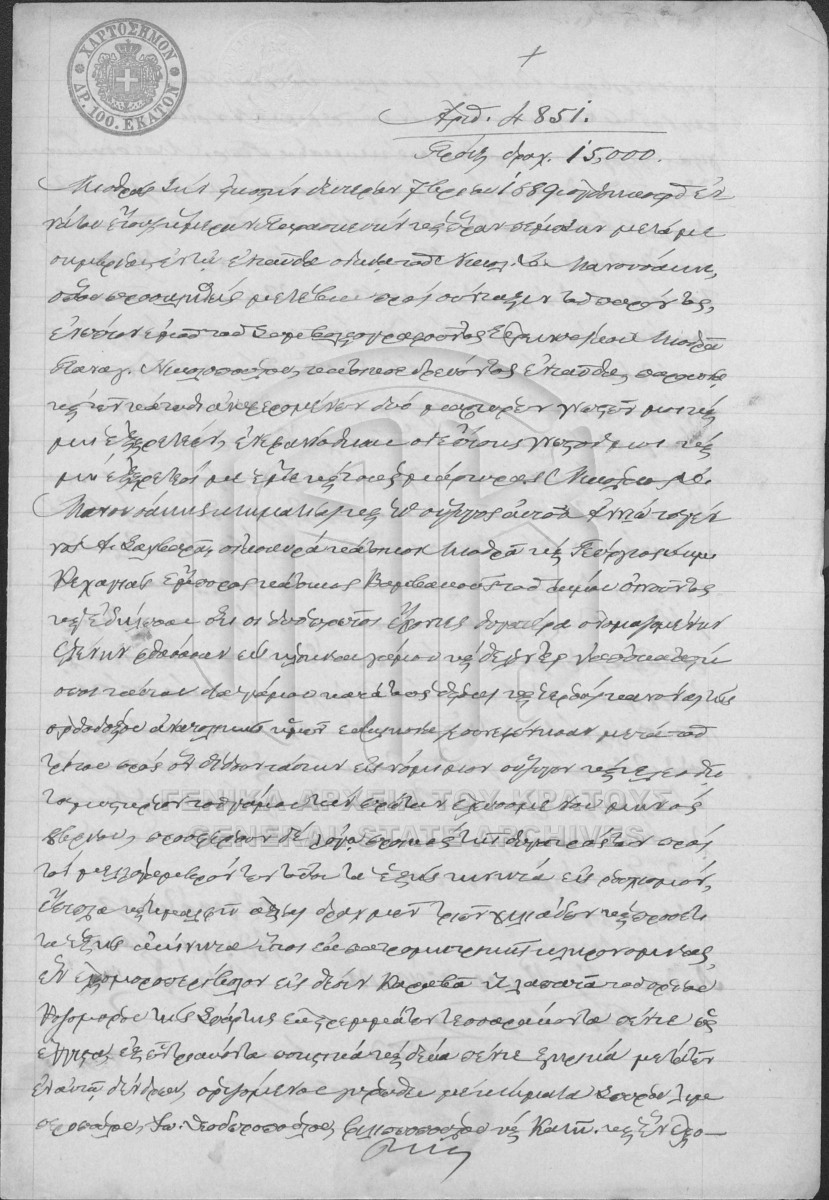[Pièce] GRGSA-LAK_NOT009.01.F000017.IT004851 Pièce #4851 [22 Σεπτεμβρίου 1889] Συμβολαιογραφική πράξη. |