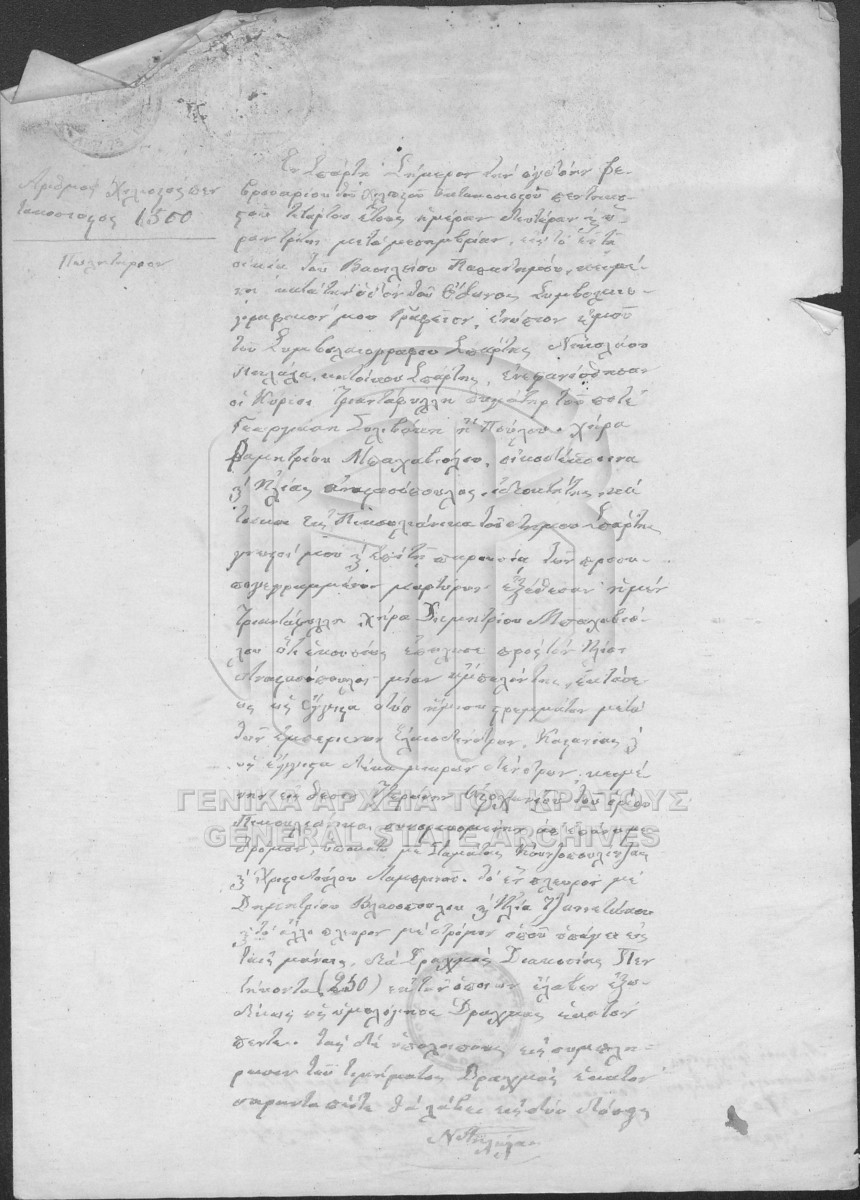 [Τεκμήριο] GRGSA-LAK_NOT023.01.F000005.IT001500 Τεκμήριο #1500 [8 Φεβρουαρίου 1854] Συμβολαιογραφική πράξη. Πωλητήριο. |