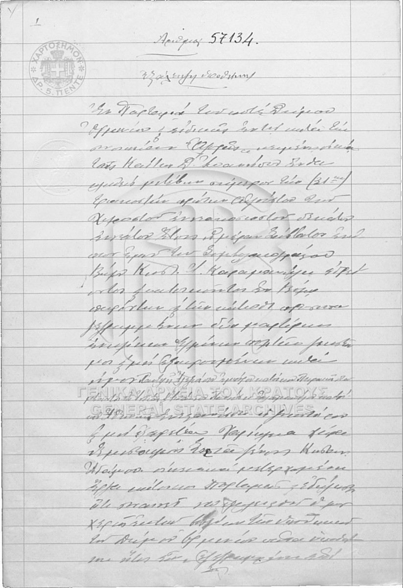 [Φάκελος] GRGSA-MAG_NOT002.01.F000111 Φάκελος #111 [1917 - 1919] Περιεχόμενα: Συμβολαιογραφική πράξη. Εξόφληση υπό το υπ' αριθμόν 54724 συμβόλαιο. Συμβολαιογραφική πράξη. Απόδειξη πληρωμής. Συμβολαι... |