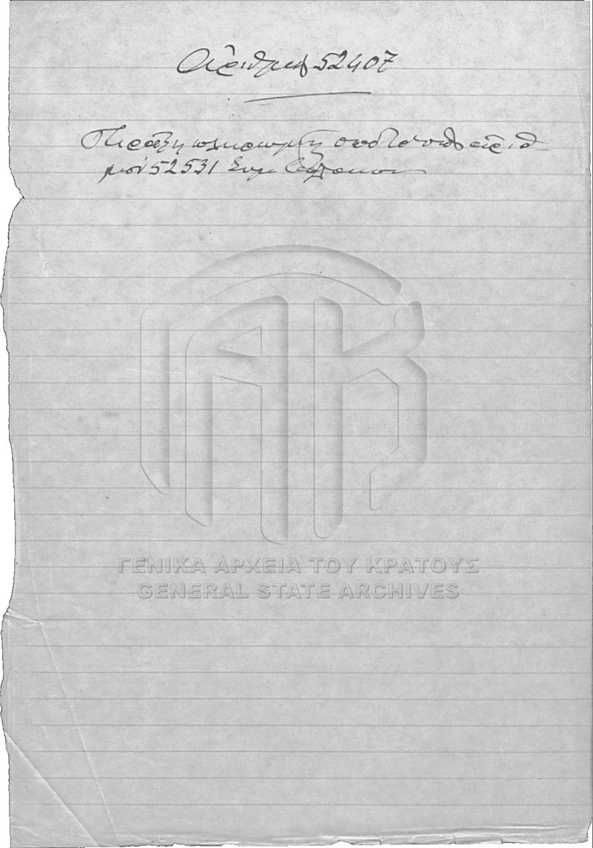 [Τεκμήριο] GRGSA-MAG_NOT002.01.F000111.IT057407 Τεκμήριο #57407 [[1919]] Συμβολαιογραφική πράξη. Πράξη πληρωμής υπό το υπ' αριθμόν 52531 συμβόλαιο. |
