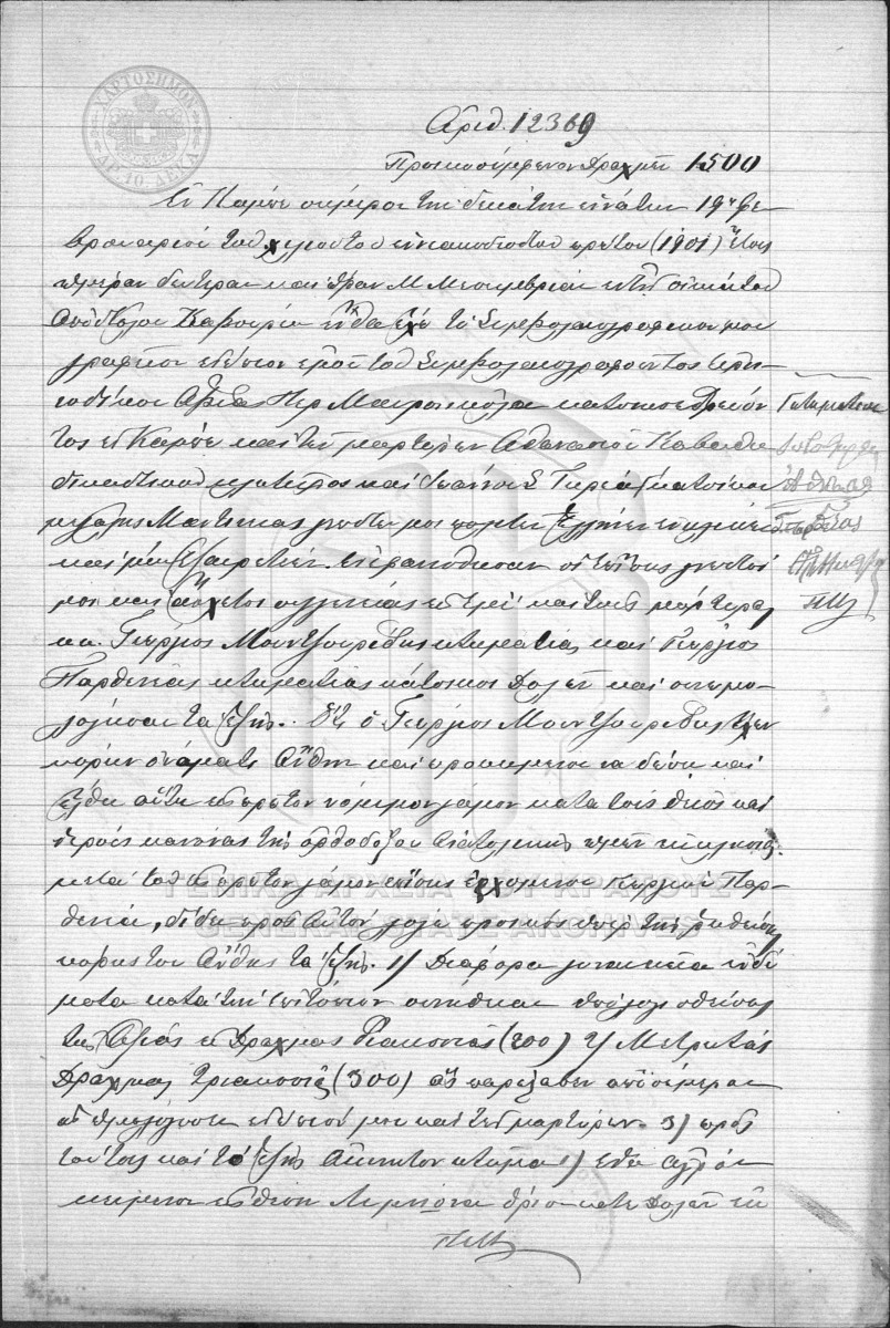 Item #12369 - ΣΥΜΒΟΛΑΙΟΓΡΑΦΙΚΟ ΑΡΧΕΙΟ ΑΒΙΑΣ  [19 Φεβρουαρίου 1901]