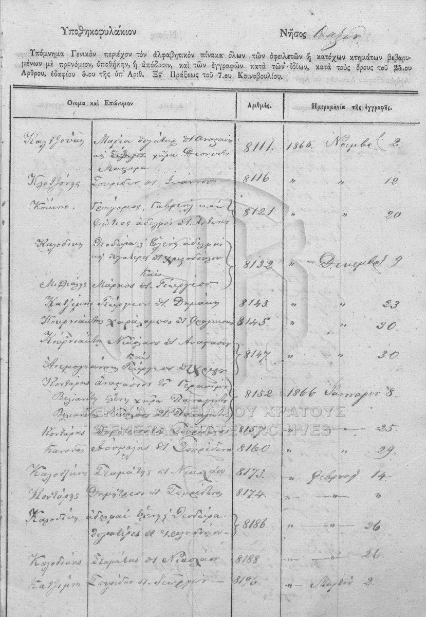 [Αρχείο] GRGSA-PAX_ADM003 ΑΡΧΕΙΟ ΥΠΟΘΗΚΟΦΥΛΑΚΕΙΟΥ (ΙΟΝΙΟ ΚΡΑΤΟΣ) [1828 - 1866] Περιεχόμενα: "Conservatione delle Ipoteche Registro Generale di tutte le inscrizioni e traserizioni a…". Γενικόν Υπόμνημα των εγγραφώ... |