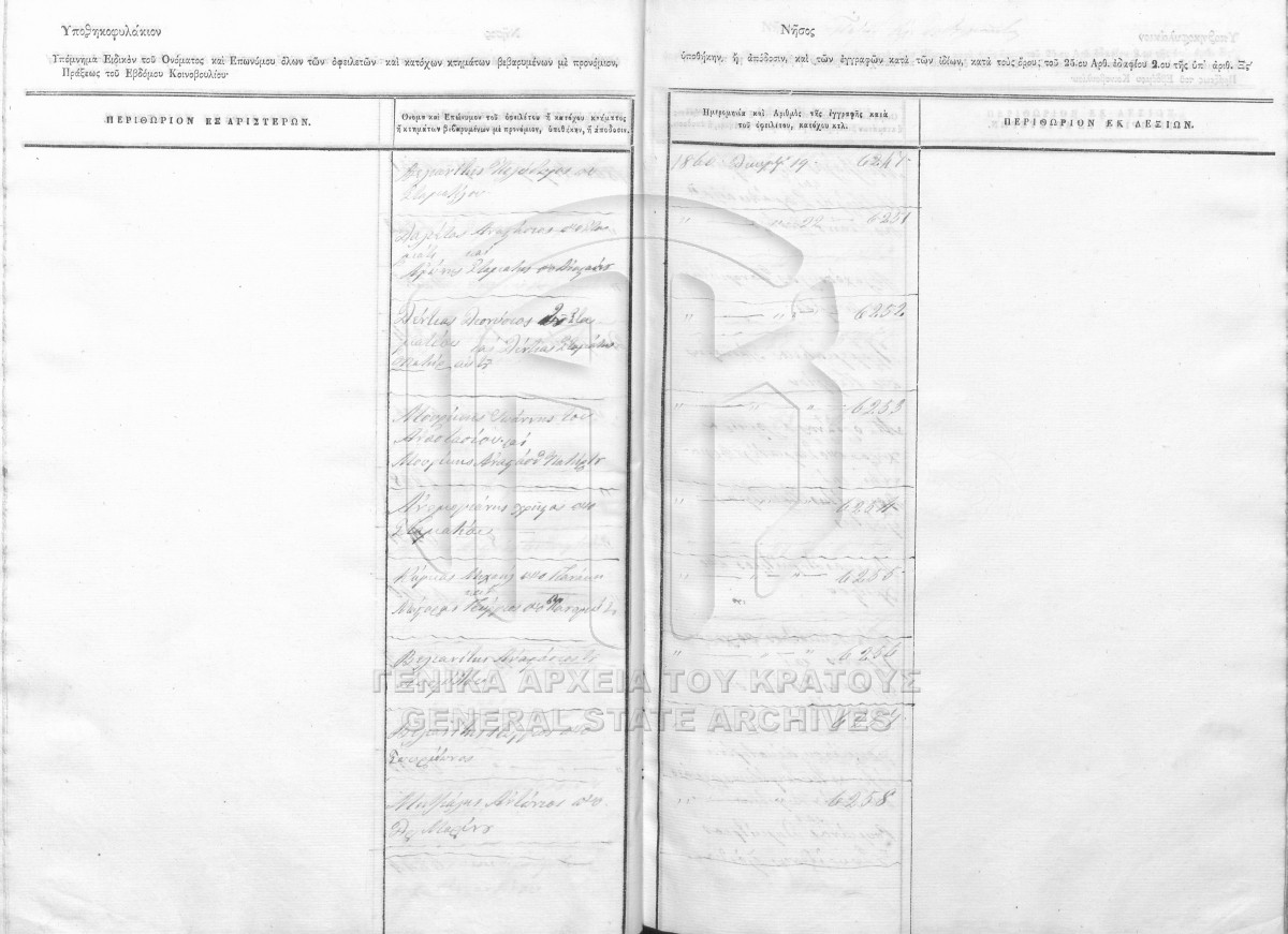 [Fonds] GRGSA-PAX_ADM003 ΑΡΧΕΙΟ ΥΠΟΘΗΚΟΦΥΛΑΚΕΙΟΥ (ΙΟΝΙΟ ΚΡΑΤΟΣ) [1828 - 1866] Contents: "Conservatione delle Ipoteche Registro Generale di tutte le inscrizioni e traserizioni a…". Γενικόν Υπόμνημα των εγγραφώ... |