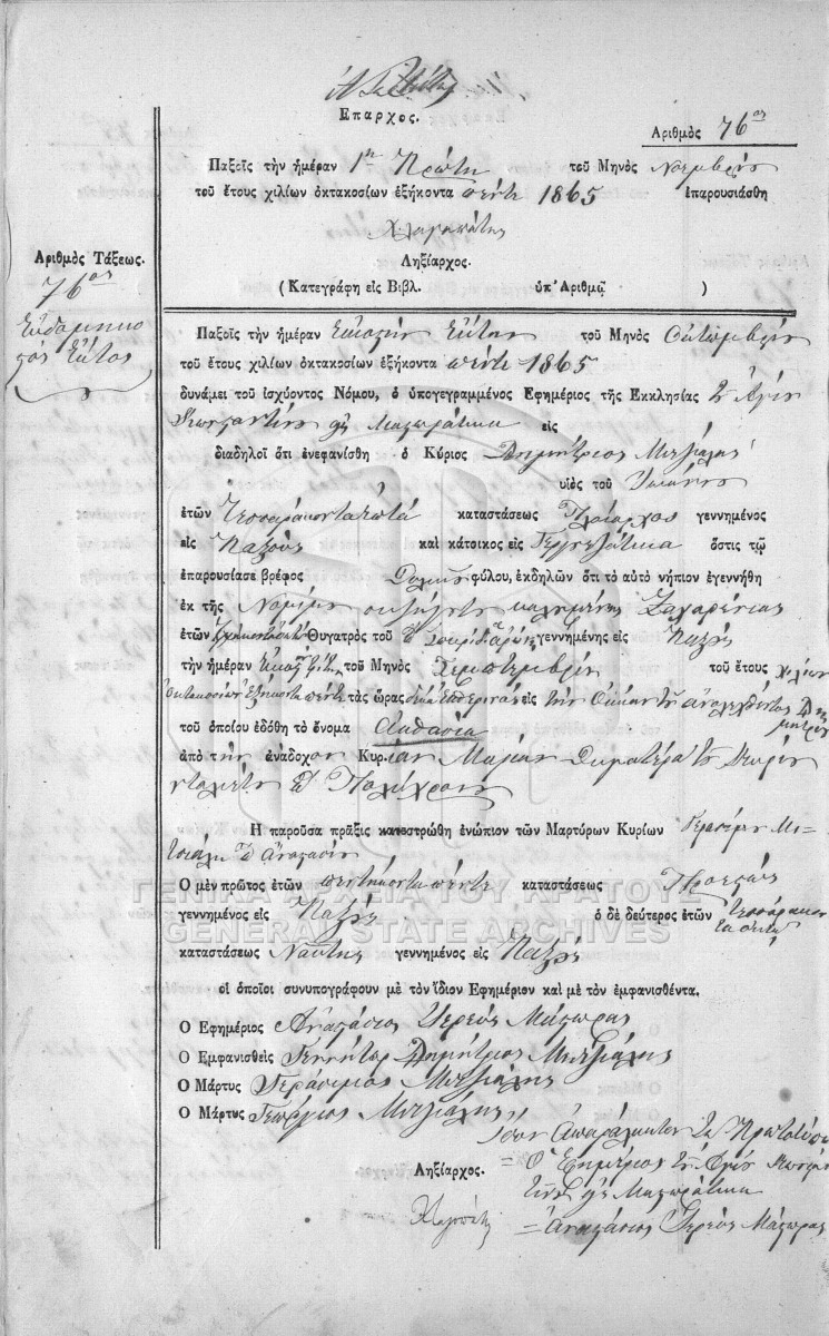 [Φάκελος] GRGSA-PAX_MUNB01.01.F000016 Φάκελος #016 [1865] Βιβλίο ληξιαρχικών πράξεων γεννήσεων του Δήμου. |