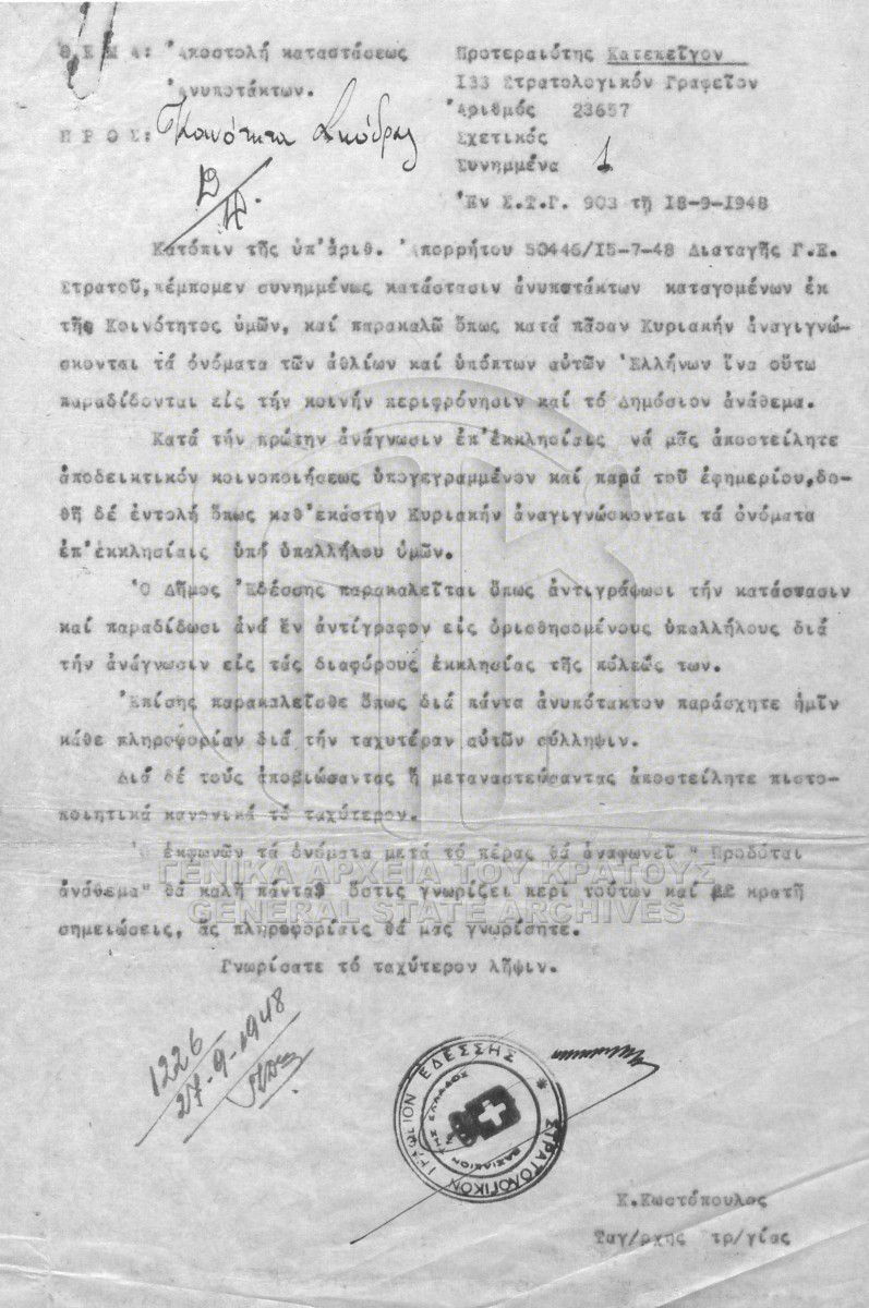 [File] GRGSA-PEL_MUN003.01.F000028 File #028 - MUNICIPALITY OF SKYDRA ARCHIVE [1948-1950] Papers relating to the Civil War. Works carried out. |