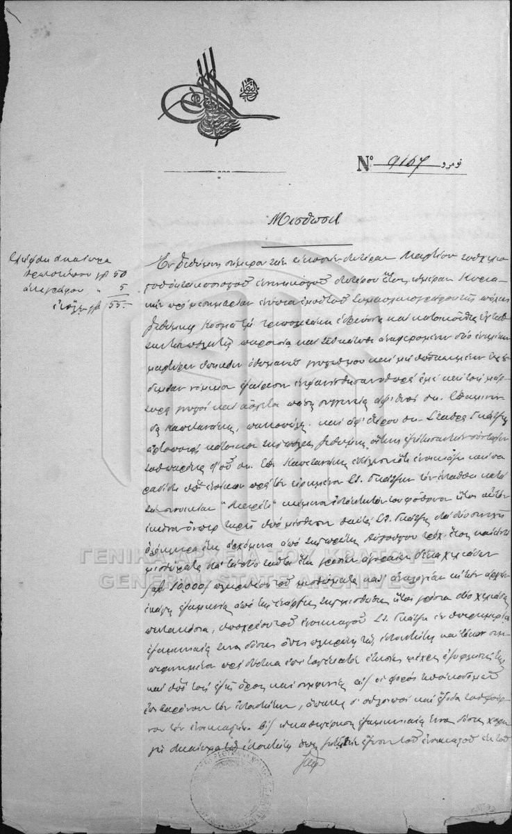 [Item] GRGSA-RET_NOT003.01.F000003.IT009167 Item #9167 - KOSMAS TRIPOLITAKIS NOTARIAL ARCHIVE AT RETHYMNO [22 Μαρτίου 1892] Notarial deed. Lease. |