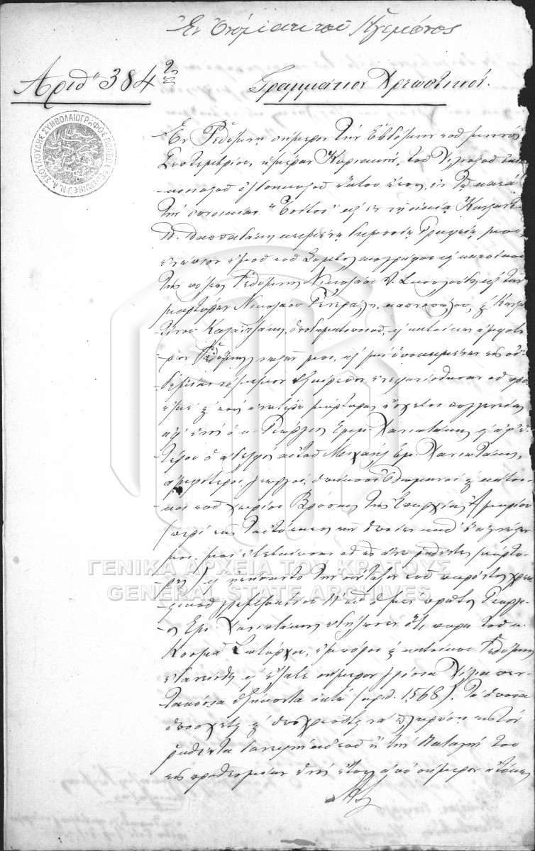 [Item] GRGSA-RET_NOT010.01.F000001.IT000384 Item #384 [7 Σεπτεμβρίου 1886] Notarial deed. Debit note. |