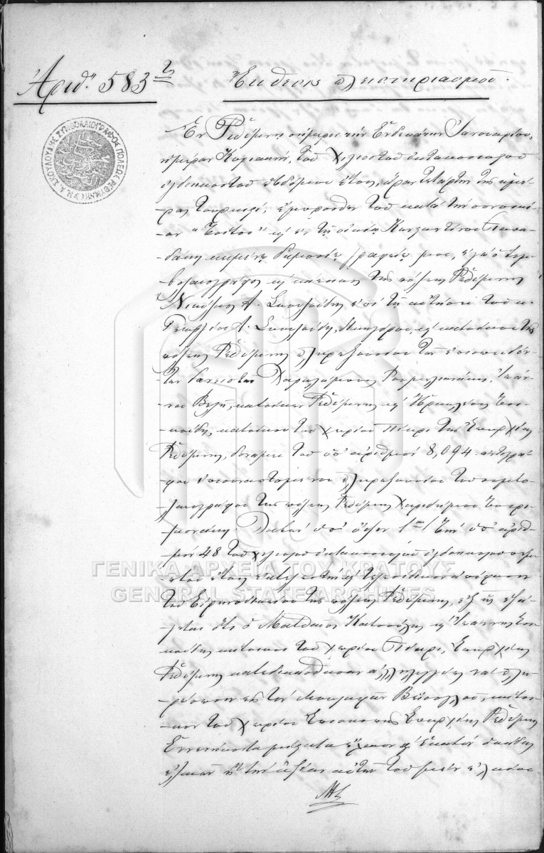 [Item] GRGSA-RET_NOT010.01.F000002.IT000583 Item #583 [11 Ιανουαρίου 1887] Notarial deed. Public sale report. |