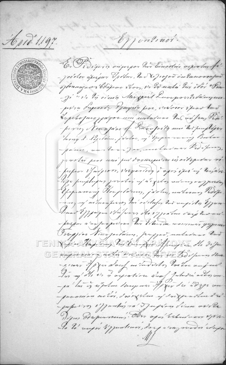 [Item] GRGSA-RET_NOT010.01.F000003.IT001197 Item #1197 [25 Αυγούστου 1887] Notarial deed. Guarantee. |