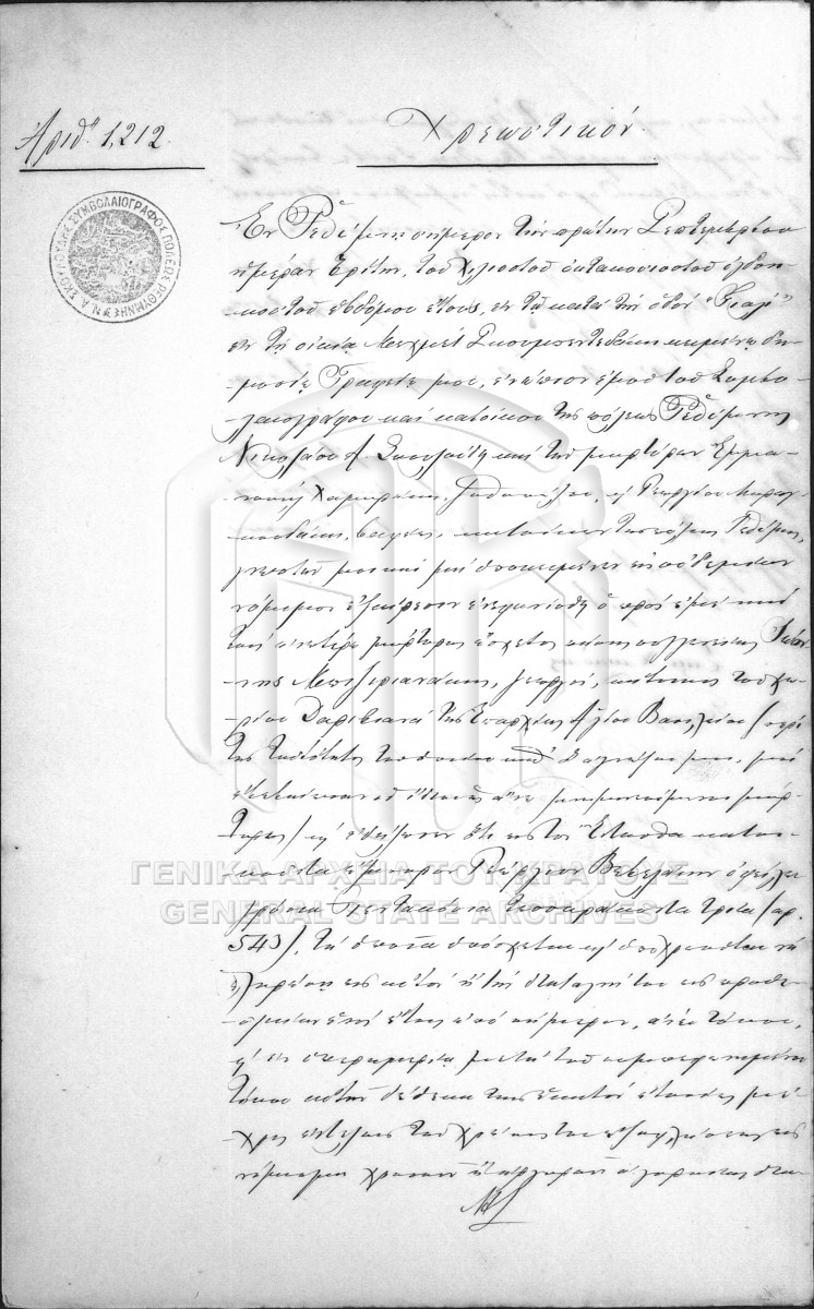[Item] GRGSA-RET_NOT010.01.F000003.IT001212 Item #1212 [1 Σεπτεμβρίου 1887] Notarial deed. Debit note. |