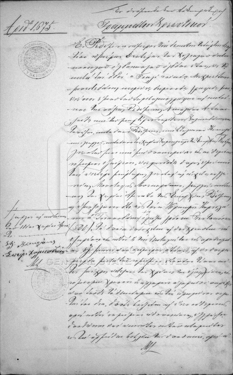 [Τεκμήριο] GRGSA-RET_NOT010.01.F000005.IT001675 Τεκμήριο #1675 [14 Μαρτίου 1888] Συμβολαιογραφική πράξη. Χρεωστικό γραμμάτιο. |