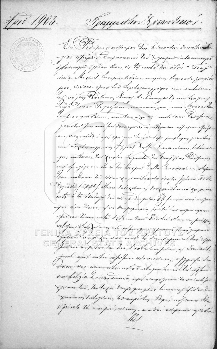 [Item] GRGSA-RET_NOT010.01.F000005.IT001903 Item #1903 [29 Ιουλίου 1888] Notarial deed. Debit note. |