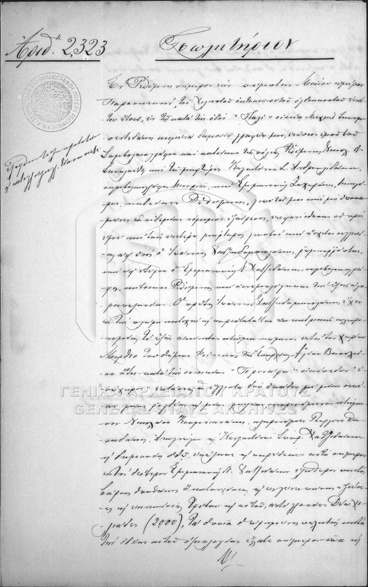[Item] GRGSA-RET_NOT010.01.F000006.IT002323 Item #2323 [5 Μαΐου 1889] Notarial deed. Sale agreement. |