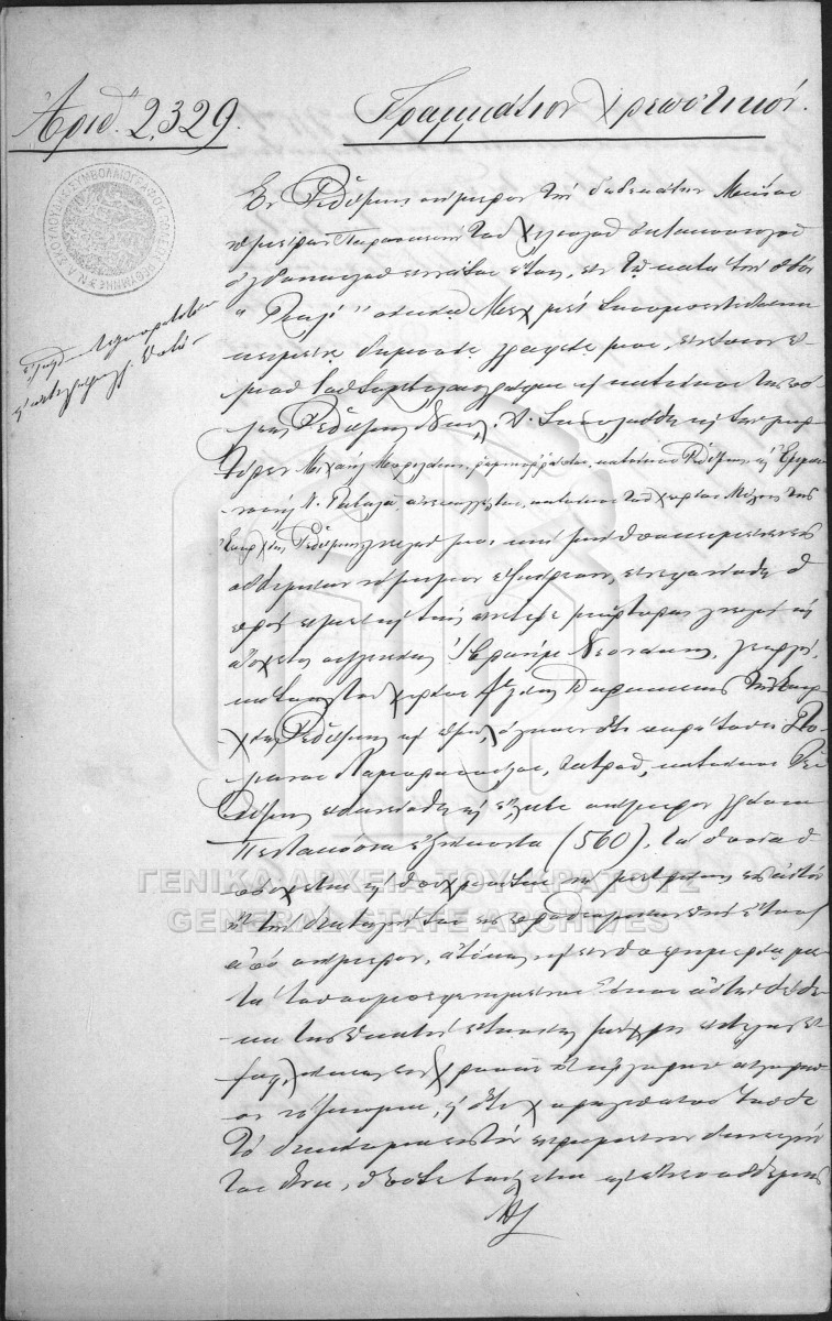 [Item] GRGSA-RET_NOT010.01.F000006.IT002329 Item #2329 [12 Μαΐου 1889] Notarial deed. Debit note. |