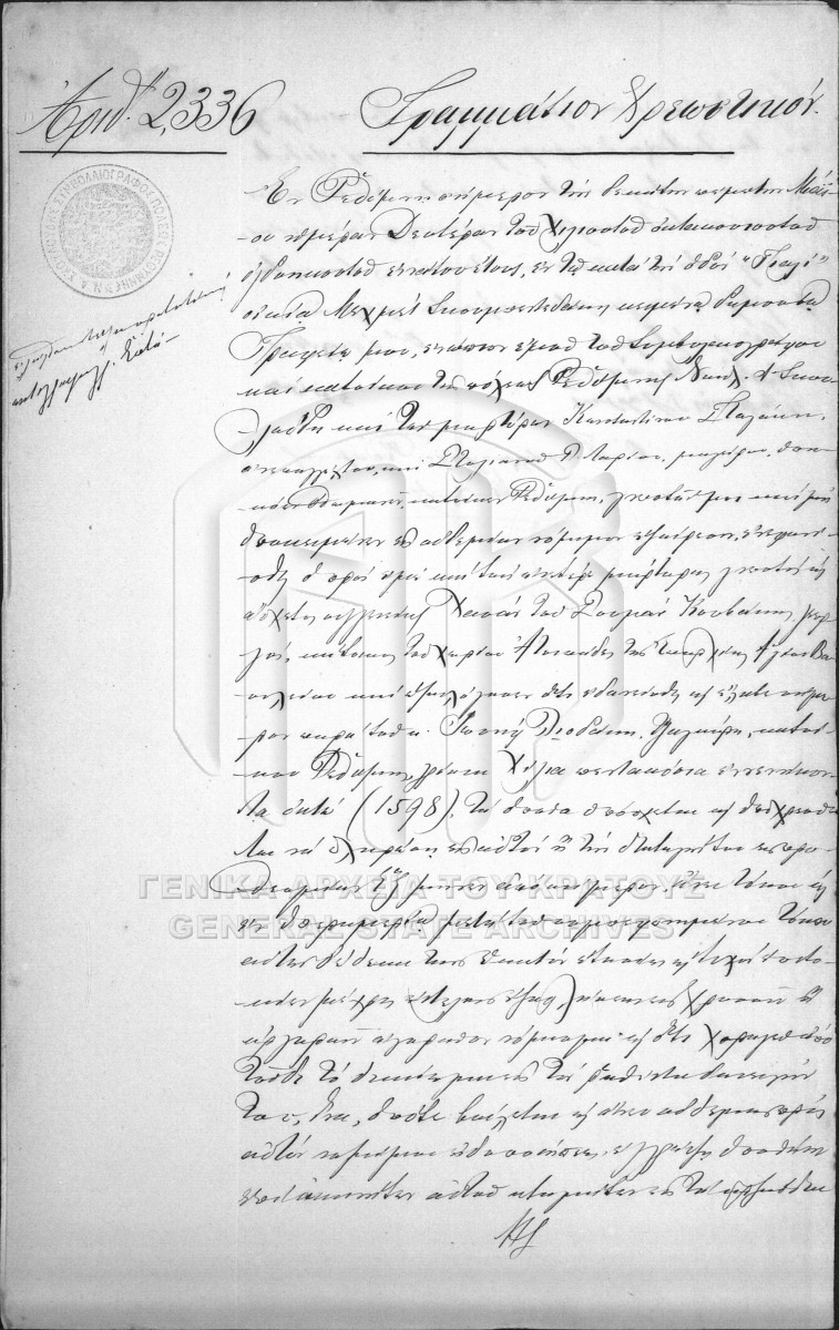 [Item] GRGSA-RET_NOT010.01.F000006.IT002336 Item #2336 [15 Μαΐου 1889] Notarial deed. Debit note. |