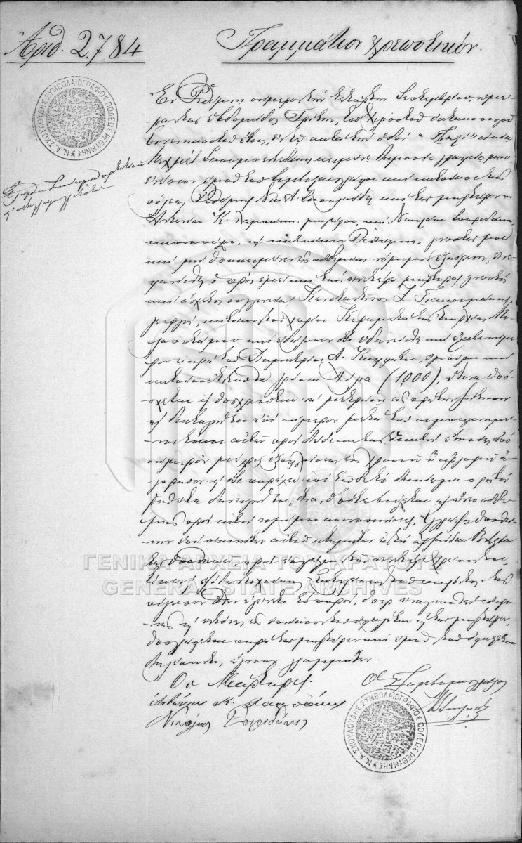 [Item] GRGSA-RET_NOT010.01.F000007.IT002784 Item #2784 [4 Σεπτεμβρίου 1890] Notarial deed. Debit note. |