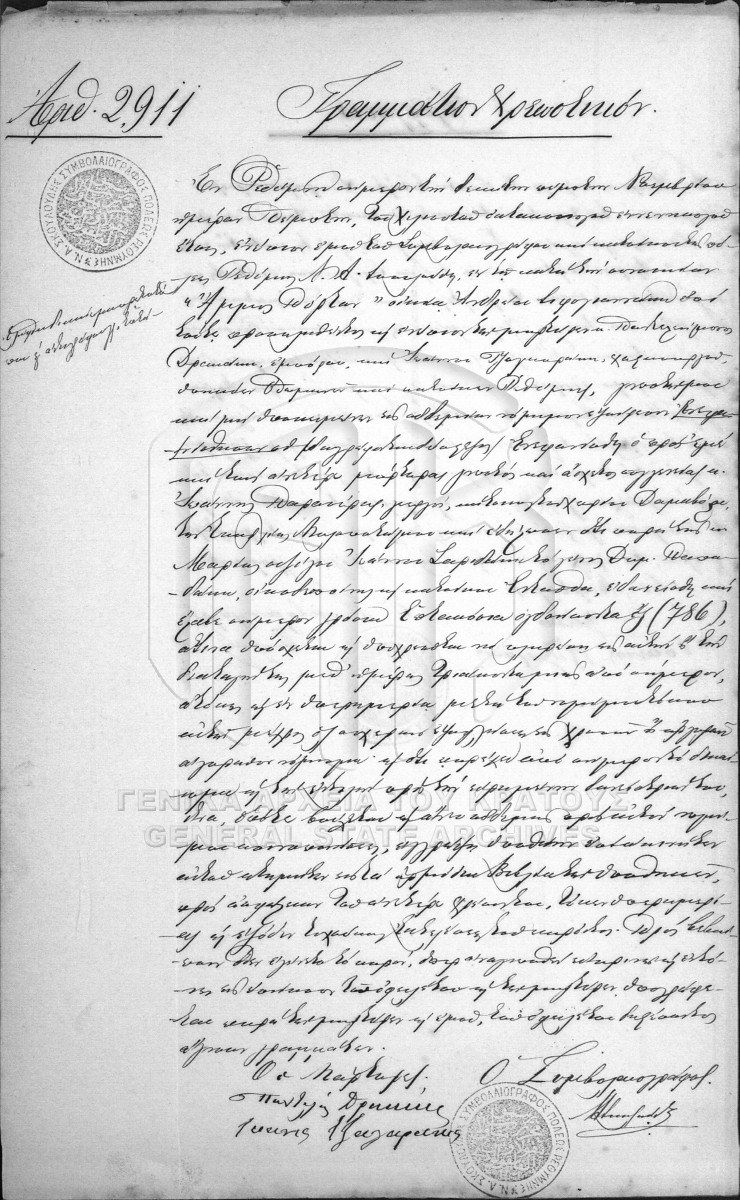[Τεκμήριο] GRGSA-RET_NOT010.01.F000008.IT002911 Τεκμήριο #2911 [15 Νοεμβρίου 1890] Συμβολαιογραφική πράξη. Χρεωστικό γραμμάτιο. |