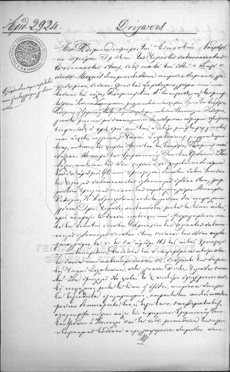 |  | [Φάκελος] GRGSA-RET_NOT010.01.F000008 Φάκελος #008 [1890 - 1899] Περιεχόμενα: Συμβολαιογραφική πράξη. Εκχωρητήριο. Συμβολαιογραφική πράξη. Χρεωστικό γραμμάτιο. Συμβολαιογραφική πράξη. Πωλητήριο. Συμ... |