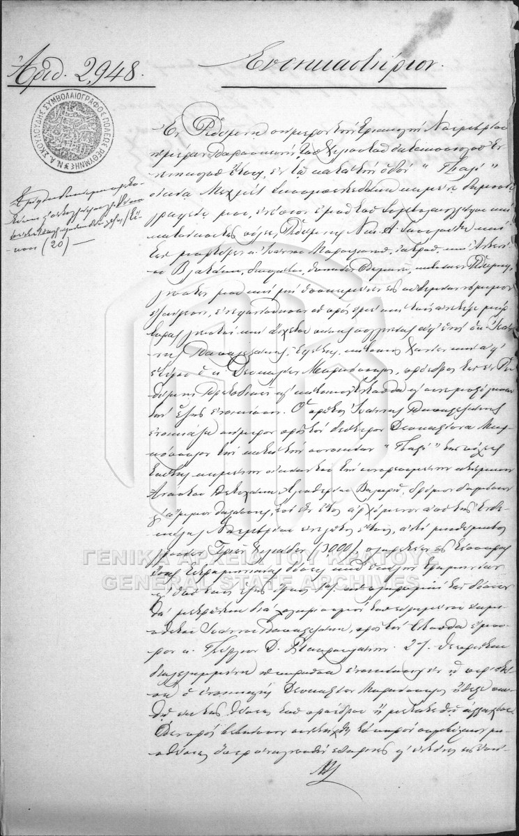 [Item] GRGSA-RET_NOT010.01.F000008.IT002948 Item #2948 [30 Νοεμβρίου 1890] Notarial deed. Lease. |