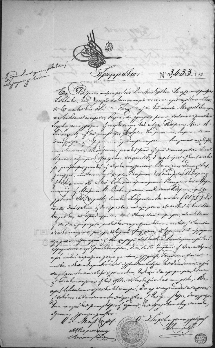 [Item] GRGSA-RET_NOT010.01.F000009.IT003433 Item #3433 [13 Ιουλίου 1891] Notarial deed. Note. |