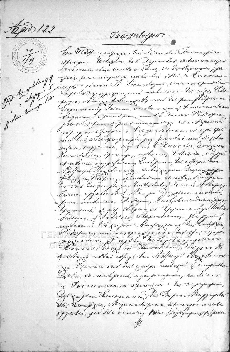 [Item] GRGSA-RET_NOT010.01.F000016.IT000122 Item #122 [20 Ιανουαρίου 1899] Notarial deed. Sale agreement. |