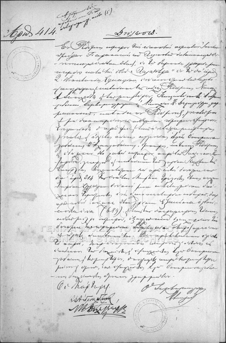 [Item] GRGSA-RET_NOT010.01.F000016.IT000414 Item #414 [25 Ιουνίου 1899] Notarial deed. Statement. |