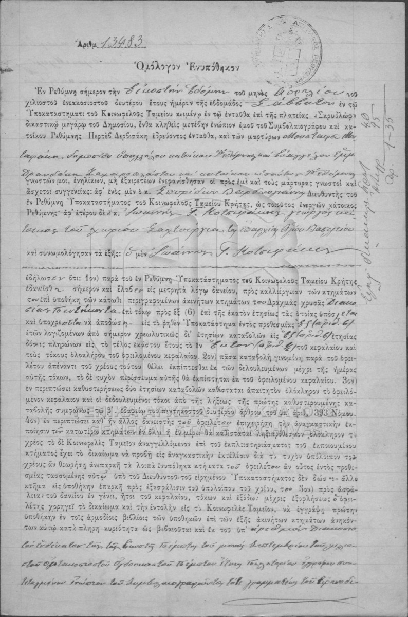 [Τεκμήριο] GRGSA-RET_NOT012.01.F000009.IT013483 Τεκμήριο #13483 [27 Απριλίου 1902] Συμβολαιογραφική πράξη. Ενυπόθηκο ομόλογο. |