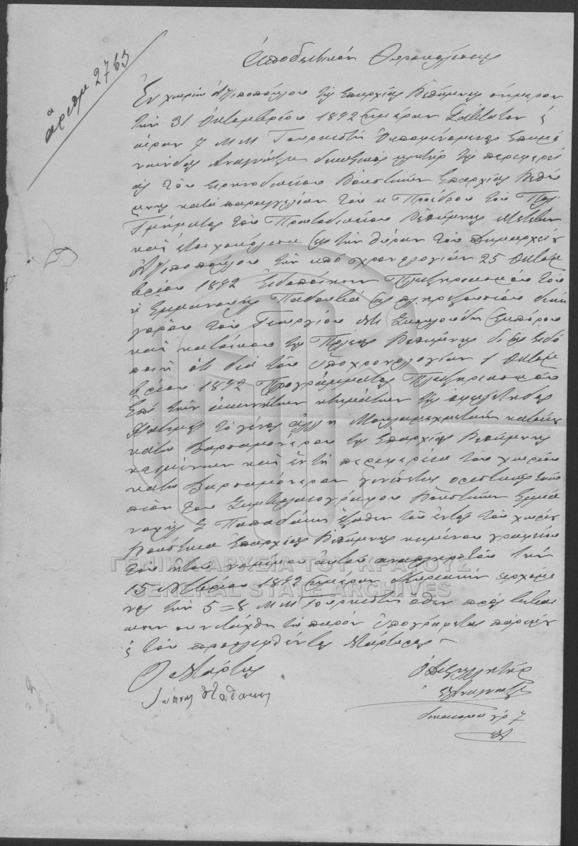 [Τεκμήριο] GRGSA-RET_NOT013.01.F000008.IT002888 Τεκμήριο #2888 [12 Νοεμβρίου 1892] Συμβολαιογραφική πράξη.  |