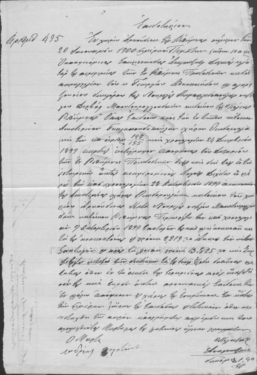 [Τεκμήριο] GRGSA-RET_NOT013.01.F000017.IT001133 Τεκμήριο #1133 [25 Μαρτίου 1901] Συμβολαιογραφική πράξη. Έκθεση πλειστηριασμού. |