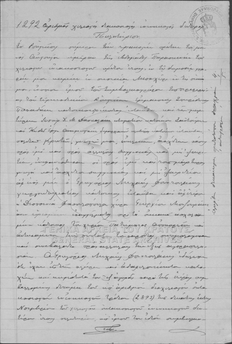 [Τεκμήριο] GRGSA-RET_NOT013.01.F000017.IT001292 Τεκμήριο #1292 [31 Αυγούστου 1901] Συμβολαιογραφική πράξη. Πωλητήριο. |