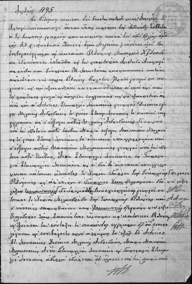 [Pièce] GRGSA-RET_NOT014.01.F000004.IT001195 Pièce #1195 [15 Απριλίου 1906] Συμβολαιογραφική πράξη. |