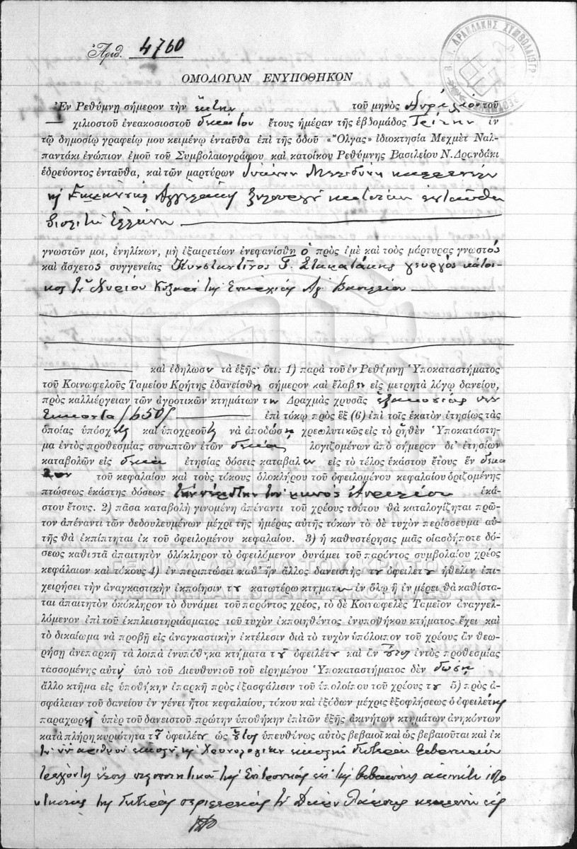 [Τεκμήριο] GRGSA-RET_NOT014.01.F000010.IT004760 Τεκμήριο #4760 [6 Απριλίου 1910] Συμβολαιογραφική πράξη. Ενυπόθηκο ομόλογο. |