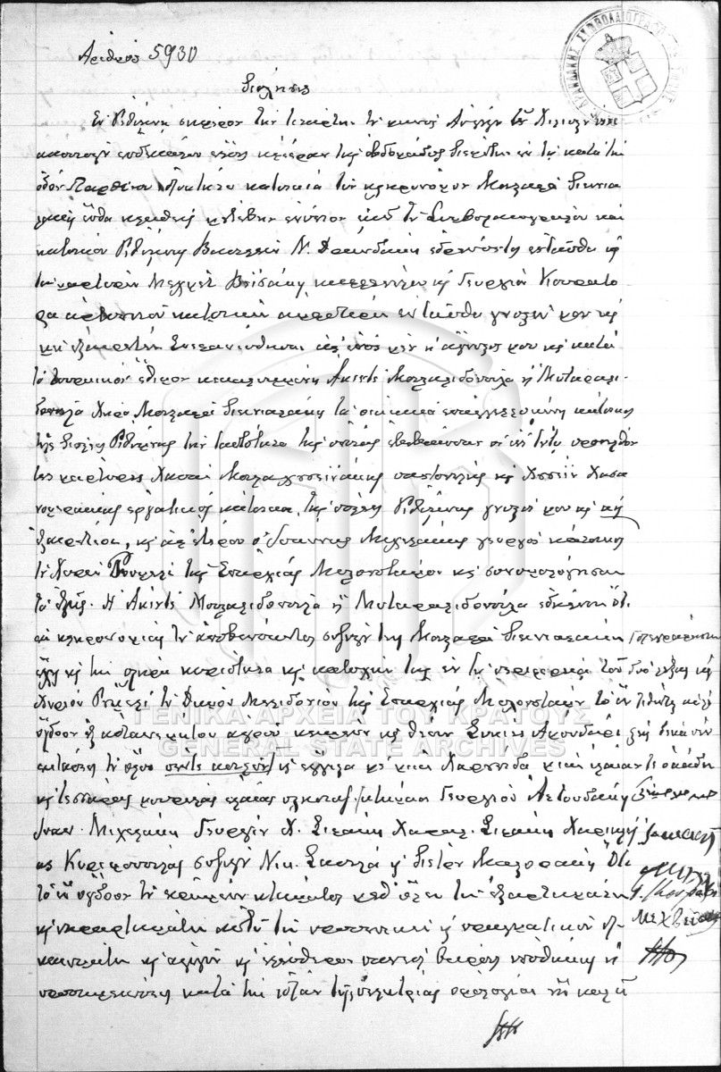 [Τεκμήριο] GRGSA-RET_NOT014.01.F000012.IT005930 Τεκμήριο #5930 [4 Αυγούστου 1911] Συμβολαιογραφική πράξη. Πώληση. |