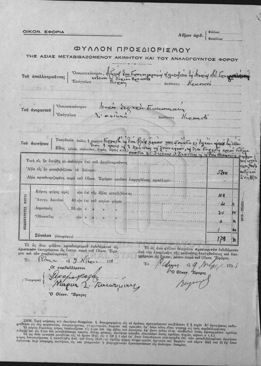 |  | [Item] GRGSA-RET_NOT014.01.F000042.IT021256 Item #21256 [9 Νοεμβρίου 1931] Συμβολαιογραφική πράξη. Πωλητήριο έγγραφου ακινήτου. |